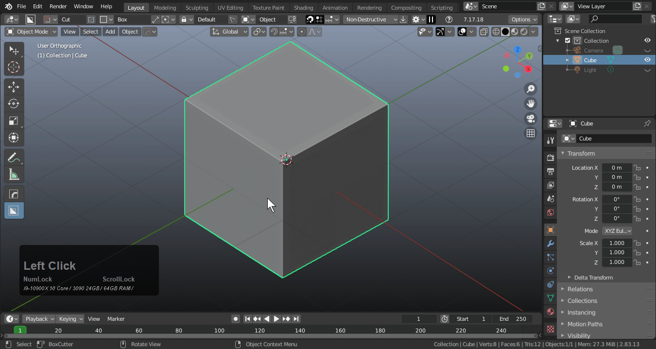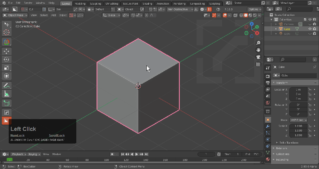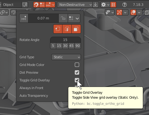 Toggle Grid Overlay – Hides the blender grid during the boxcutter grid. This can help focus and reduce the confusion with seeing Blender’s grid on the grid from boxcutter.